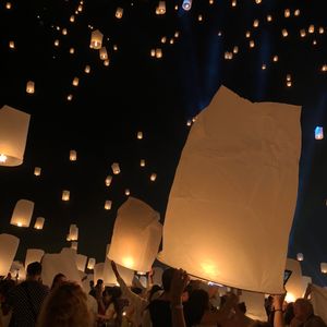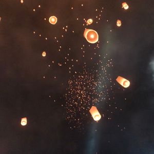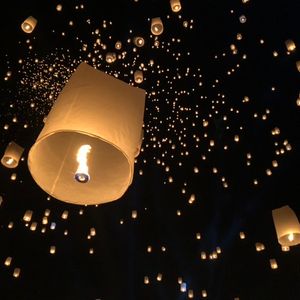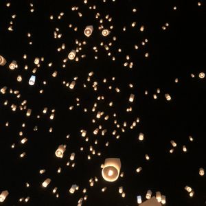 死ぬまでに絶対みたかったコムローイ祭りの景色。夜空に打ち上がるランタンは本当に綺麗で感動して涙が出ました。迷っている方は絶対行ったほうがいいと思います。