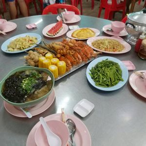 お昼は、スープ、鶏肉や魚の素揚げ、チャーハン、焼きそば、炒めもの、蟹・海老などという感じでしたが、みなさん余り食べていなかったです。
