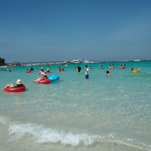 小学生の子供が海に行きたいというので、日帰りで気楽なこちらのOPツアーを選びました。親子+わたしの母の3人での参加でしたが、結論から言って、大満足です。想像をはるかに上回る海の透明度。プーケットの海よりずっときれいです。パタヤから高速のジェット船でラン島に行くのですが、出発地のパタヤは透明度のない残念なビーチです。パタヤにも観光客はいましたが、ほんの20分で美しいラン島のビーチに着けます。ラン島は、日帰り専門のビーチなのでしょうか。韓国、中国のツアー客でいっぱいでした。大半は韓国人で、日本人はほとんどいなかったと思います。別料金でバナナボートに乗りましたが、娘とわたしの2人で貸切状態できれいな海を駆け抜けました。お昼ごはんも、ボリューム満点な内容で、日本人の口に合う味付けでした。わがままを言えば、エビが一人一尾だったので、もう少しほしいなと思いました。また、デザートがスイカのみだったので、南国ならでは果物がもう少しあってもよいかとも思いました。お手洗い事情はよくないですが、ロッカーの利用しやすさなど総合的にも参加する価値は大いにあると思います!