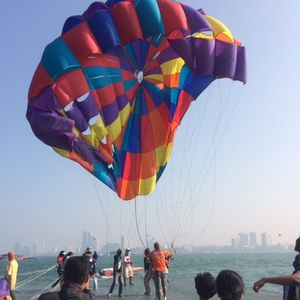 とても良いツアーでした。バスでパタヤまで向かい、そこからスピードボートに乗るのですがこのボートがまた爽快で水の上を軽快に走り、心地よい揺れと風がとても気持ちよかったです。ラン島に行く途中の浮嶋みたいな所でパラセーリングをしました。一人840Bでした。