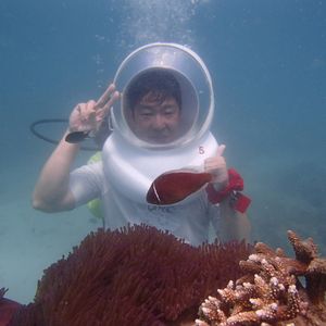現地でシーウォーカーをしましたが魚への餌のパンくずで海が濁り視界1メートル程。海底に作られた鉄柵に捕まらされ中国人団体客にグイグイ押され・・・申し込んだことに後悔。