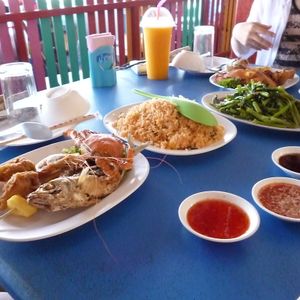 昼食はシーフードで食べきれないほどで満足できるものでした。