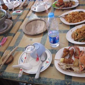 食事もメインのカニ、エビ、トリ以外のディッシュはおかわりし放題ということで、満足でした。味もおいしかったです。辛い食べ物はなく、老若男女OKです。おかわりする余裕もなかったくらい、たくさん提供されました。