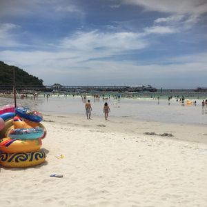 白砂のビーチがキレイでした。バンコクからも1時間半くらいで到着し、色んなマリンスポーツも楽しめます♪スピードボートでの移動時は、波の揺れとボートのスピードで結構揺れました。