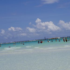 離島というには人が多く混雑した印象を受けましたが、パラソルをツアー会社が確保してくれた為、最前列の眺めが良い場所をひたすらキープして荷物も見張ってくれていたので安心して海との往復が出来ました。他の口コミでは、パラセイリングの待ち時間が気になると書いてありましたが、順番がまわってくるまで確かに待ちます。けれど、許容範囲内の待ちだと思いました。ボートへ携帯等の持ち込みが禁止なので、飛んでる姿を撮影出来なかったことが残念でした。シーウォーカーとか、ものによっては持ち込み可能なようです。