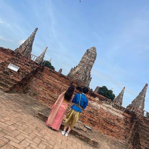 渋滞もなくスムーズに最初のスポットに到着。民族衣装を着てワットチャイワッタナーラムを観光し、ガイドさんにたくさん写真をとってもらいました。民族衣装はマネキンのを見ながらどんなタイプがいいか、どんな色がいいか聞いてくださり、お店の方がぱぱっと着付けをし、ガイドさんが髪を整えてアクセサリーを選んでくださいました。私はスニーカーだったのですが、衣装に似合う靴も貸してくださり(朝一で他にお客様もいなかったので借りられたとは思いますが)、とても気分が上がりました。