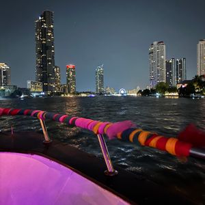 夜のディナークルーズも申し込み、参加しました。2、3時間ほど、バンコクのチャオプラヤ川の上で綺麗な夜景をたっぷり満喫できます。今回は屋外の席にしました。食事はブッフェ形式で、屋内に並ぶ料理を自分でとりに行きます。食事をしながらバンコクの風情を感じられる穏やかな時間を過ごしました。一方、客船の最上階ではアーティストが盛り上げ隊となって音楽を奏で、賑やかでした。