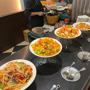 昼食はホテルのビュッフェで、タイ料理がたくさん並んでいました。とくにヌードルが美味しかったです。