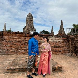 最初の見学地ワット・チャイ・ワッタナーラムに着くと、まずレンタル衣装店でアユタヤ王朝時代の伝統衣装に着替えて見学しました。ガイドさんはとても日本語がお上手、撮影スポットやポージングも的確で、タイ旅13回目にして最高の写真が撮れました。