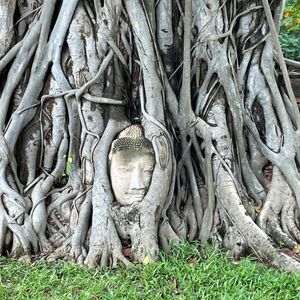 ワット・プラガームの菩提樹に覆われたアーチ門の神秘的な雰囲気も印象的でしたし、ワット・プラ・マハートの木の根に埋もれる仏頭は一見の価値がありました。