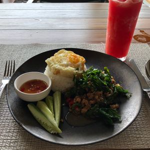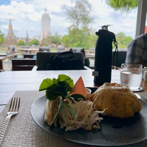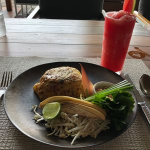 ランチはタイ人の方にも人気なリゾートホテル「SALA Ayutthaya」のレストランでいただきました。目の前にチャオプラヤー川と遺跡が広がる絶景の中で、本格的なガパオとパッタイを楽しみました。スイカスムージーも最高に美味しかったです!