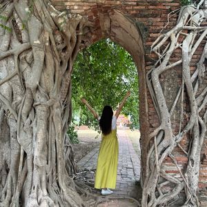 タイ民族衣装に着替えてのワット・チャイワッタナラーでの撮影は、お天気に恵まれたのもあり、まさにフォトジェニックツアーでした。日本語ガイドさん付き、ホテルまで送迎なので、始終安心して過ごせました。まるでモデルさんかのようなポージングでたくさんのお写真を撮って頂き嬉しかったです。下調べ無しでの参加でしたが、ガイドさんのお話しで、アユタヤ文化の背景からタイの現況までお聞き出来て、大変勉強になりました。一番楽しみにしていたランチは、スタイリッシュなレストランで素晴らしい景色を眺めながらのお食事で、見た目も味もとても良く、現地の方にも人気店の様です。また、タイの乗り物ならではのトゥクトゥクに乗れたり、綿菓子の様なロッティを食べたり、それを作っている方の様子を見させていただきました。現地の方と触れ合う機会はなかなか無いので、こういった屋台のような所へ連れて行って頂けるのは有難いです。現世と異世界がつながる不思議な木の穴体験&現地のお墓参り、ワット・プラ・マハタートでの散策などなど盛りだくさんな満足度が高いツアーでした。最後の遺跡を見ながらのカフェも落ち着く空間で旅の締めくくりにはバッチリでした。有名な観光地は押さえつつ、現地の方にしか知らないマイナーな所にも連れて行って頂けるのは、お任せツアーならではですね。たまたまご一緒させていただいたご夫婦も本当に良い方で、急きょ1人参加になり不安でしたが、お陰様でとても楽しく貴重な一生の思い出が出来ました。また海外旅行をする時はVeltraさんに是非お世話になりたいと思います。本当にありがとうございました。