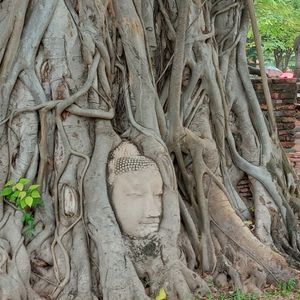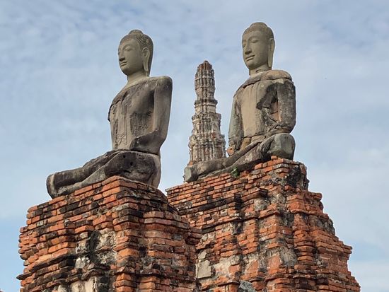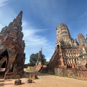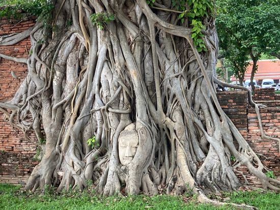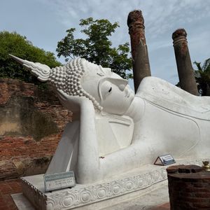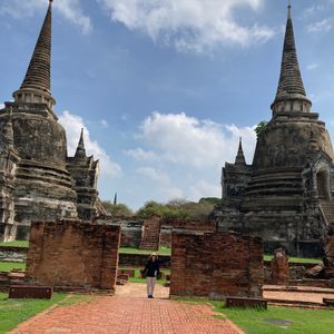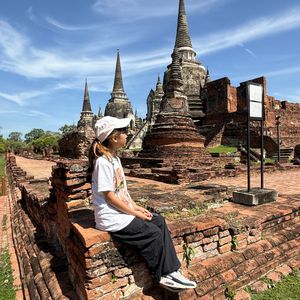往復のタイ国鉄は想像していたよりも近代的でしたが、空調が効きすぎて冷蔵庫のようでした。トゥクトゥクでのアユタヤ市内の移動は景色が良く見れて、その土地の匂いも感じられ良かったです。各遺跡ではガイドさんが流暢な日本語で遺跡の成り立ちを説明してくれます。写真もたくさん撮ってもらえて嬉しかったです。途中スコールがありましたが、10分ほど雨宿りしたら止みました。