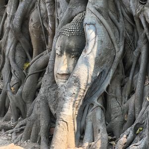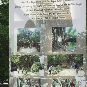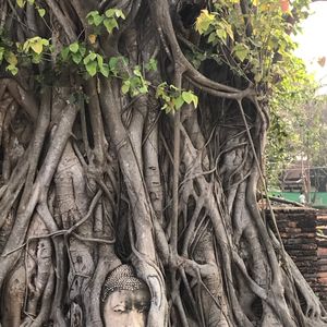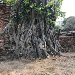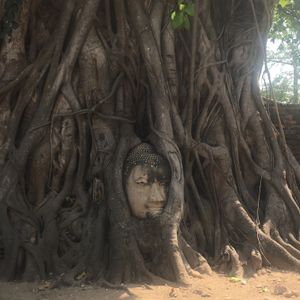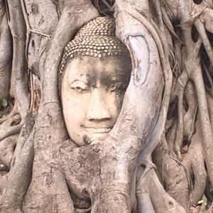 アユタヤ王朝遺跡、木の根元で奇跡的に残っている仏頭と、破壊された仏像の数々を見ることが出来るワット・マハタートは、戦争の悲惨な現状を後世に伝えている様に感じました。