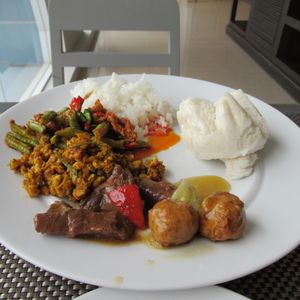 ランチは、海外仕様になっているのか、現地のカレーを食べたときの余りの辛さに驚いた前日の辛さの半分もない程度の甘さ?具合でした(笑)。しかし、どれもこれもとてもおいしく、思いっきりいろいろなものを食べ時間が足りなくなったほどです。チラリチラリ、ガイドさんの行動を見ながら、集合時刻を過ぎても何人かの方が食べていたほどです(笑)