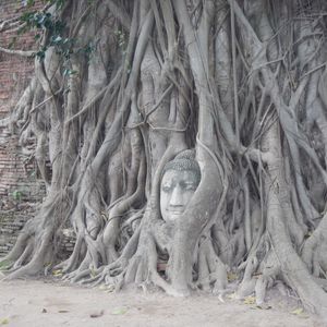 ワットプラマハタートでは仏像の頭が木の根に取り込まれた有名な光景が見られます。