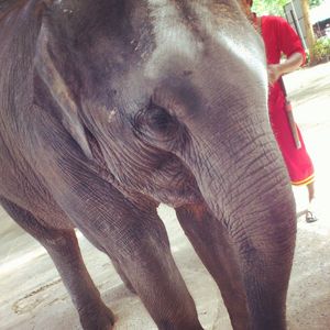 また一人200Bくらいでゾウと写真を撮ることができます。いろんなポーズが出来て、私の時はゾウ使いに命令され無理やりのハグのポーズでした。鼻でハグしてくれます。無理やりでしたがいい記念になりました!ちなみにこのゾウはまだ5才の小さなゾウです。