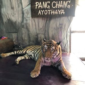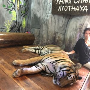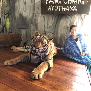 アユタヤでは、念願の木に埋まった仏像の顔を生で観れて感動!!(私はこれが目的の一つだった)その後、像乗り体験…そこには本物の虎と写真撮れる体験もあった(有料)虎ちゃんに一瞬触る事もできて猫ちゃん好きの私は一瞬でもお金を払った価値あり!