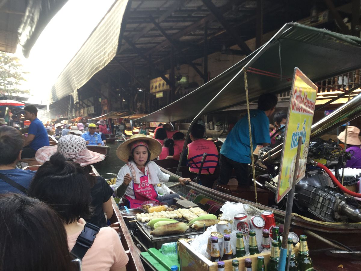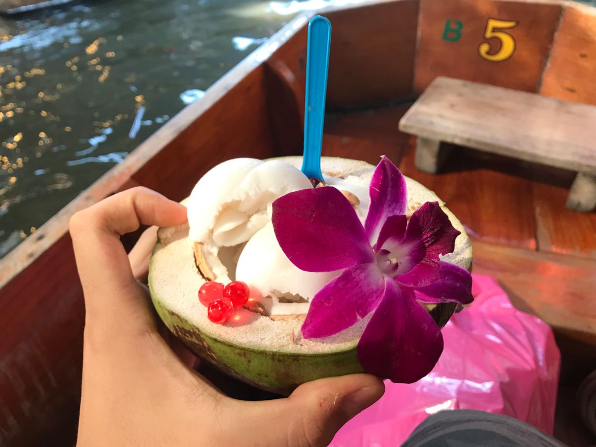 水上マーケットは別途200B必要ですが小型ボートに乗って値引きを楽しんでください。船でのココナツアイスが美味しかった。
