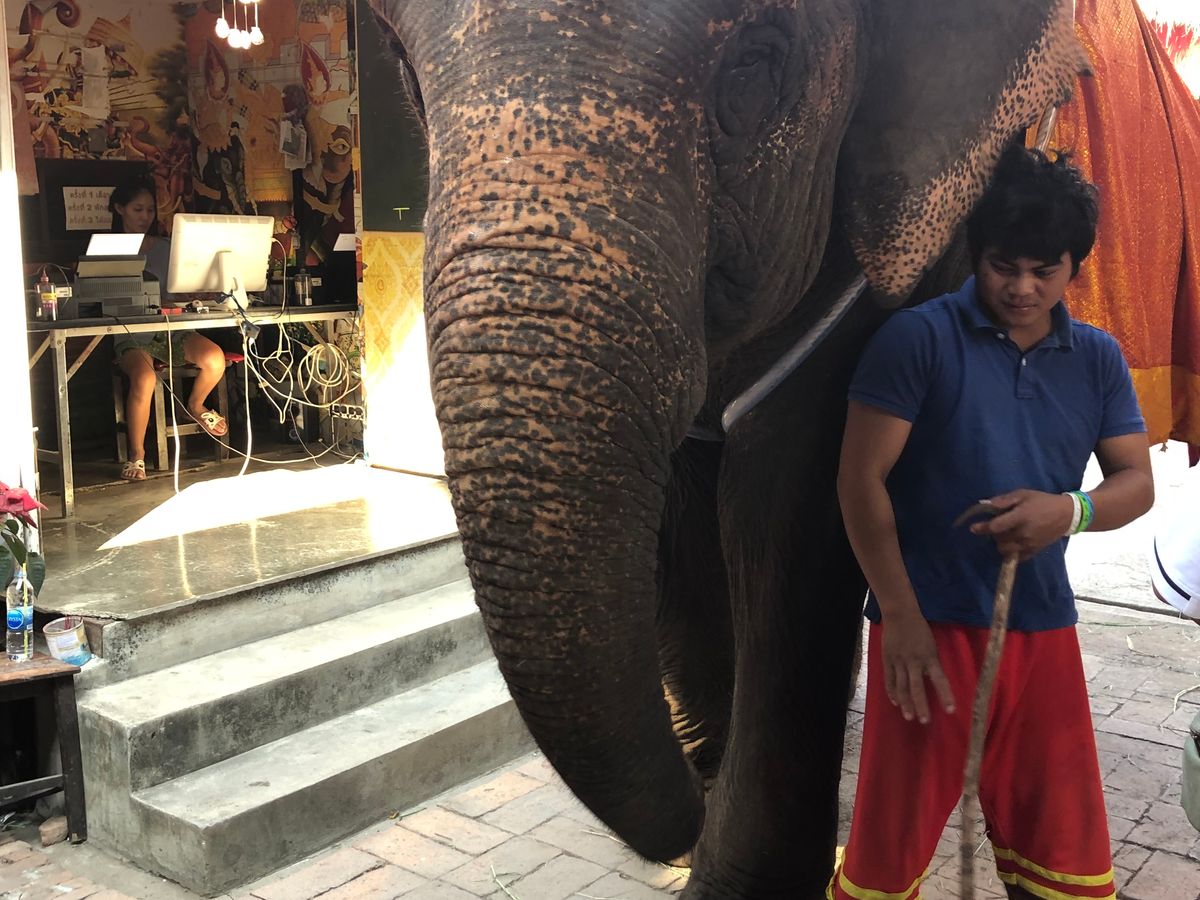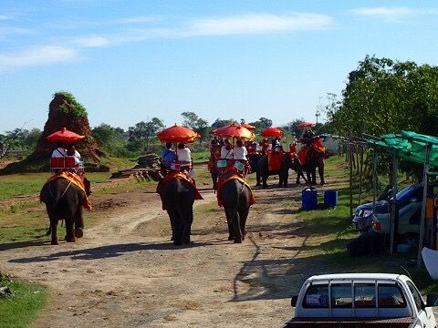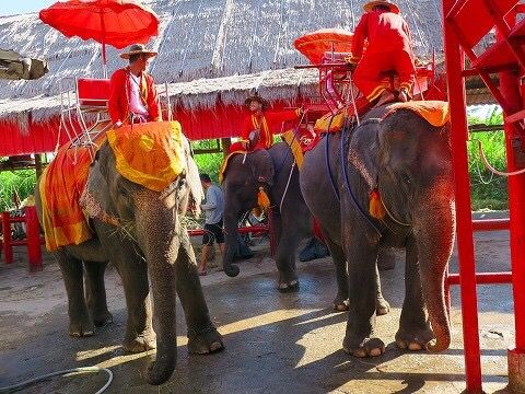 アユタヤの遺跡は暑かったので簡単ガイドでOKでしたが、金箔を貼ってお供えする方法とかをガイドして欲しかった。像に乗る所の時間はもう少し長く欲しかったです。像使いへのチップ20Bは忘れずに!乗る他に写真撮影50B像のヒザに乗れます、餌やり50Bトウモロコシを5本くらいあげる体験ができます。ライド中の写真は500Bと高いですがキレイに撮ってくれるので買う価値あります。