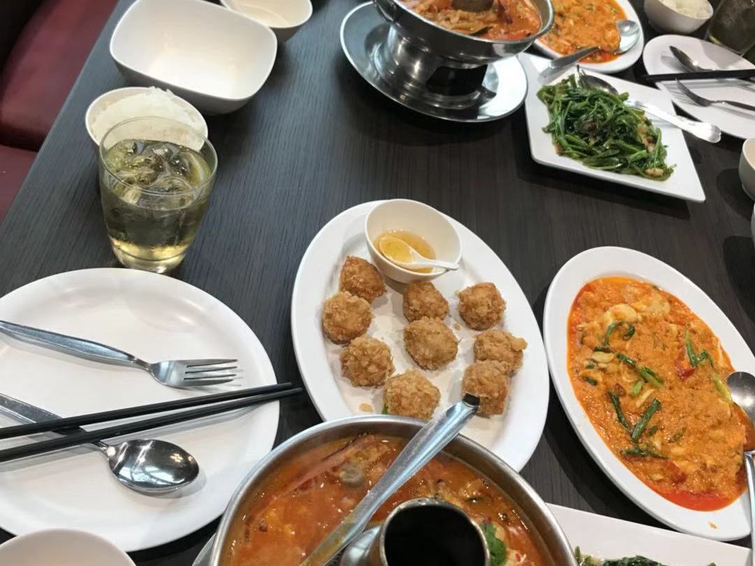 ランチはプーパッポンカレーとトムヤムクン、クーシンサイ、海老団子でとても美味しかったです!後から有名なお店と知りました!笑