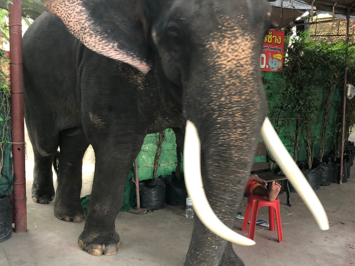 象乗りでは別料金で1人20THBのチップが必要です。象の牙で出来たブレスレットは300THBでした。