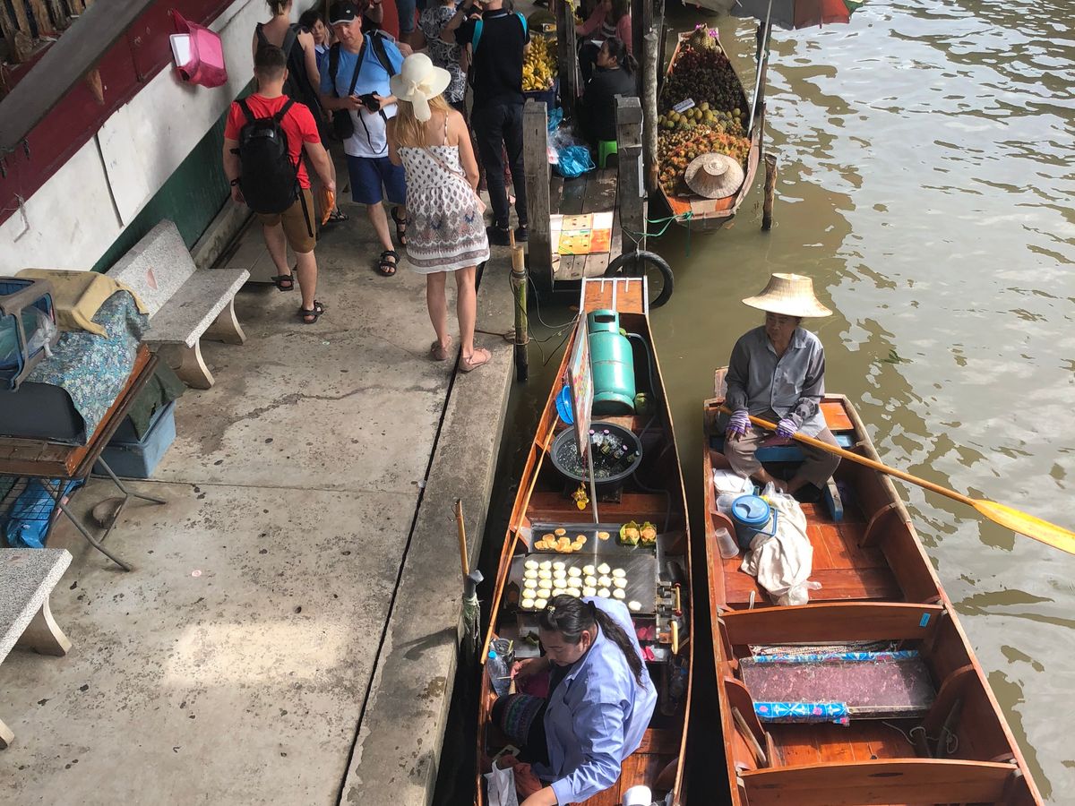 水上マーケットでは別途200THB掛かりますが、手漕ぎボートは絶対に乗った方がいいです。テレビなどで見た水上マーケットを身近で体験できます。