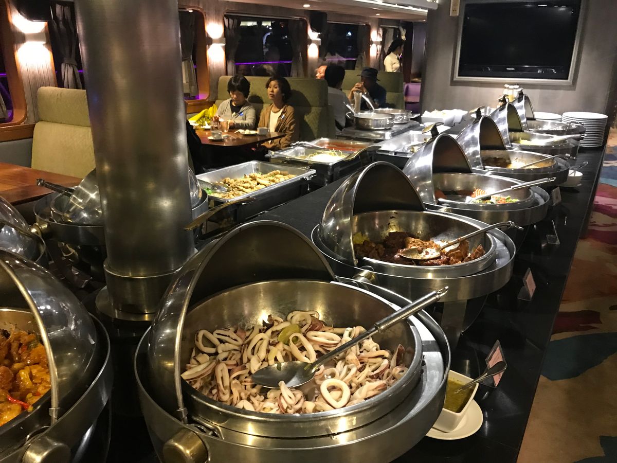 お昼ご飯は、タイ料理も食べられるコジャレタビュッフェ。綺麗なホテルでゆっくりできて、眺めもよく、休憩にはもってこい。いろいろと食べたいものをもりもり食べて、とてもゆっくり過ごせました。