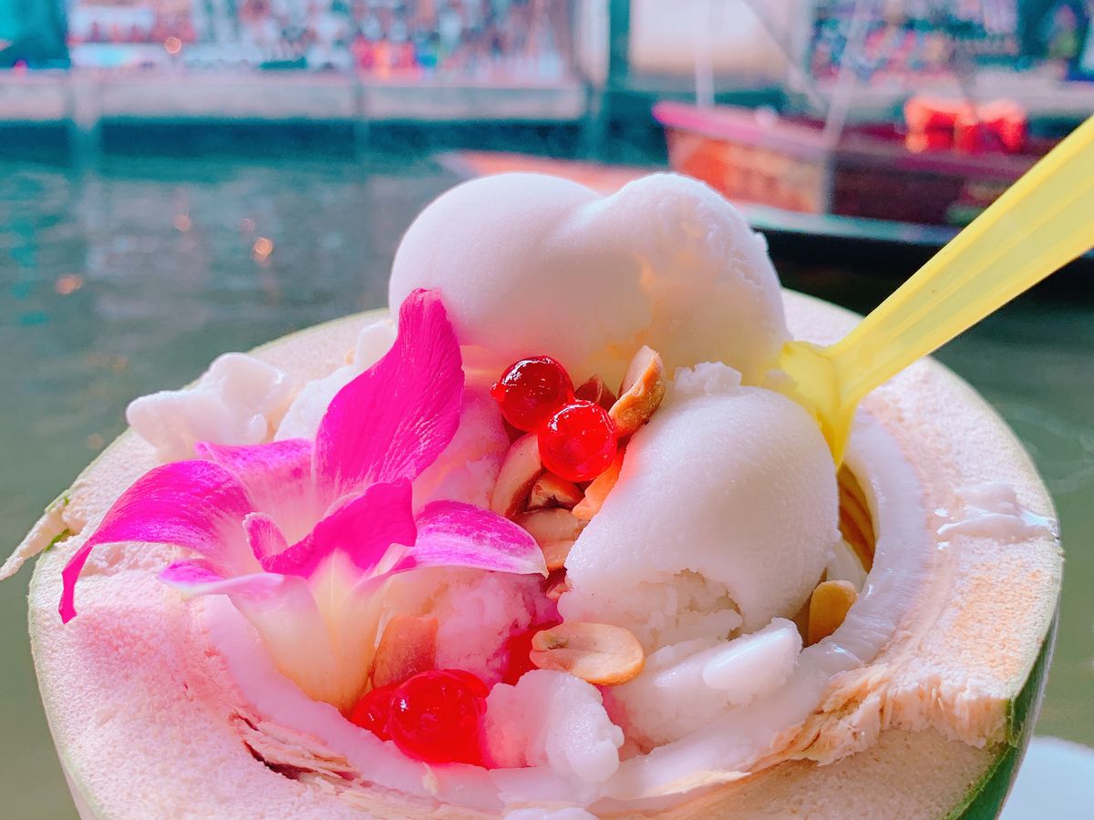 水上マーケットのココナッツアイス美味しい。
