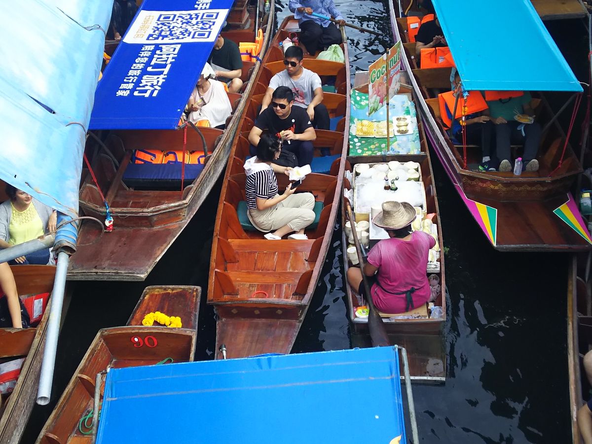 水上マーケットも面白かったです。ただし、観光客相手にかなり売り込みが強いですから、興味のないものは手に取ったりしないほうがよいでしょう。舟でマーケットを回っていると、動物や蛇を急に見せてきて、「あなたのスマホで写真を撮ってあげるよ」と言われます。料金はお高めですのでご注意を。