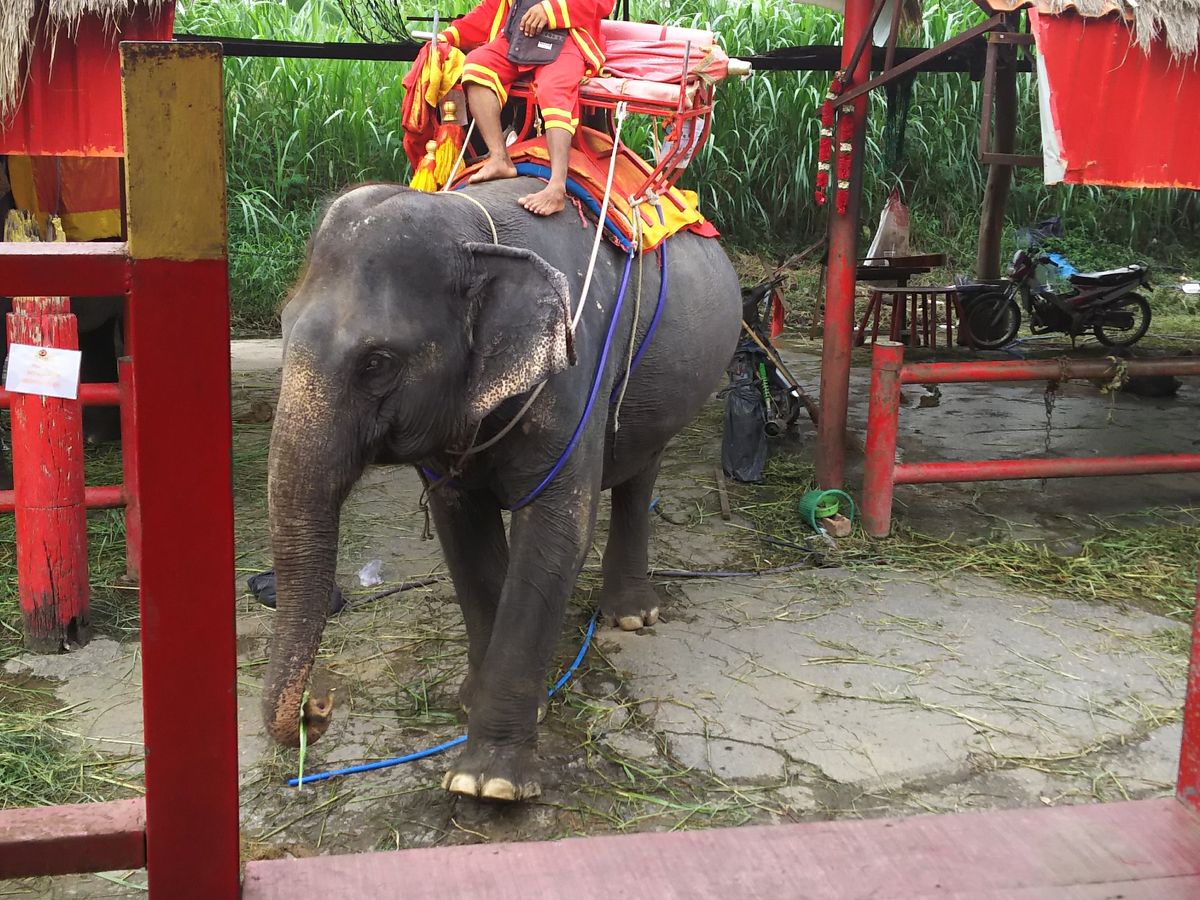 念願の象にも乗りました。ここでも、象使いの人が象牙のアクセサリーを売り込みします。タイは基本的に、お店では、値段は「交渉」が多いので(デパート等を除く)、買う場合は交渉しましょう。いらない場合は、はっきり断って大丈夫です。