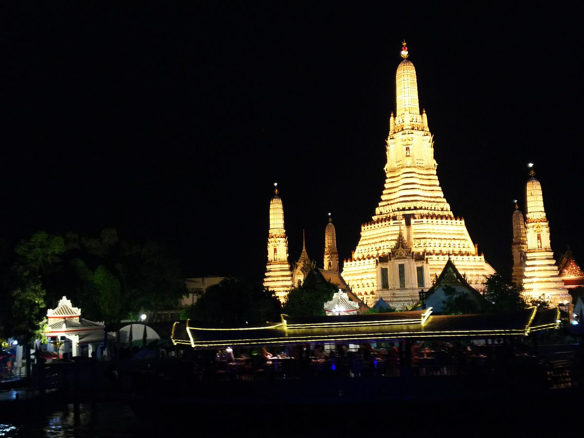 午前中は古いアユタヤ遺跡の観光で、歴史を感じ、夜は華やかなバンコクのライトアップされた街を見渡せるディナークルーズ。
