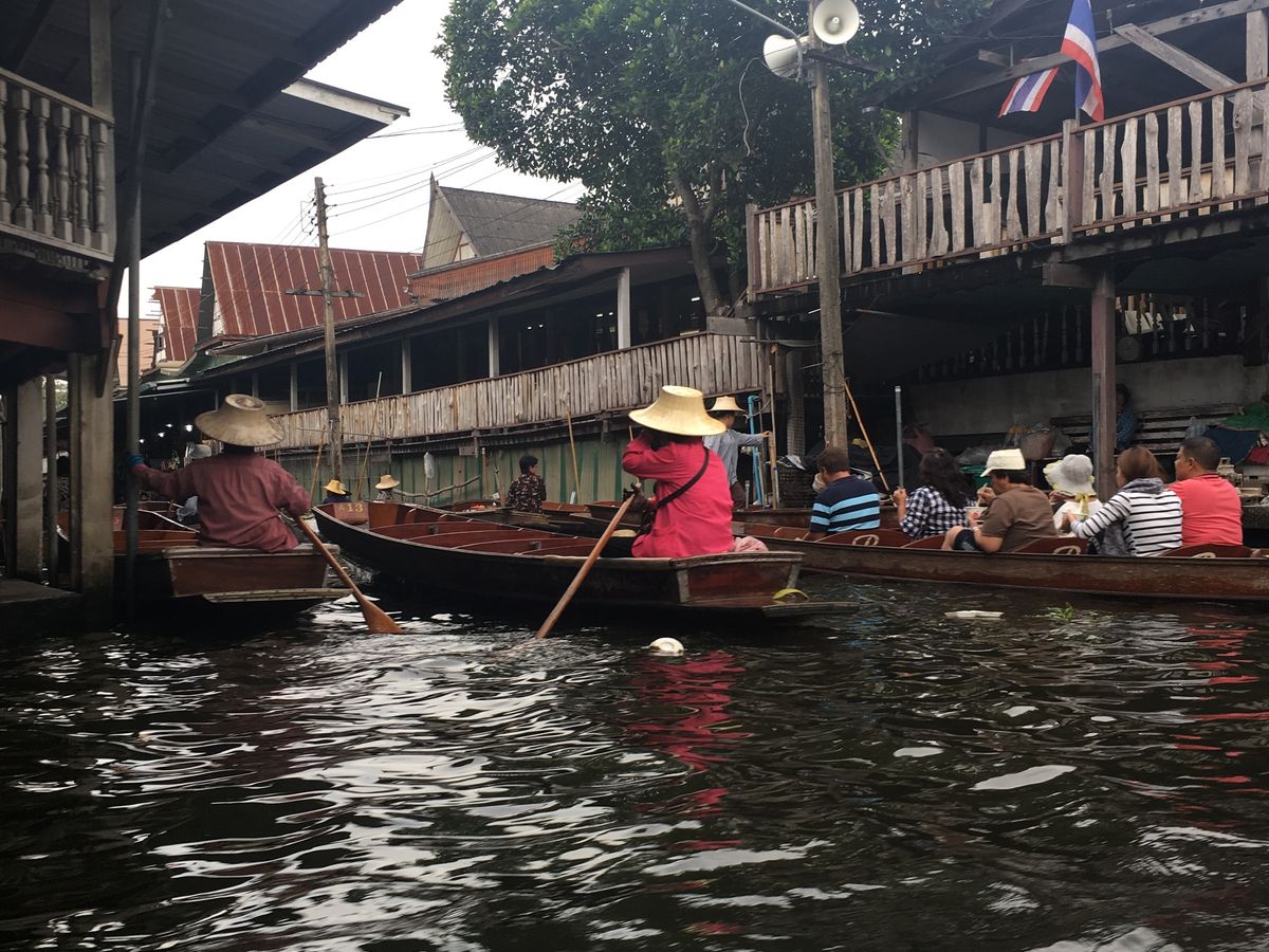 水上マーケットでは手漕ぎ船に乗り合わせたり、写真を取り合ったりと、一人で参加していることをあまり意識せずに過ごせました。