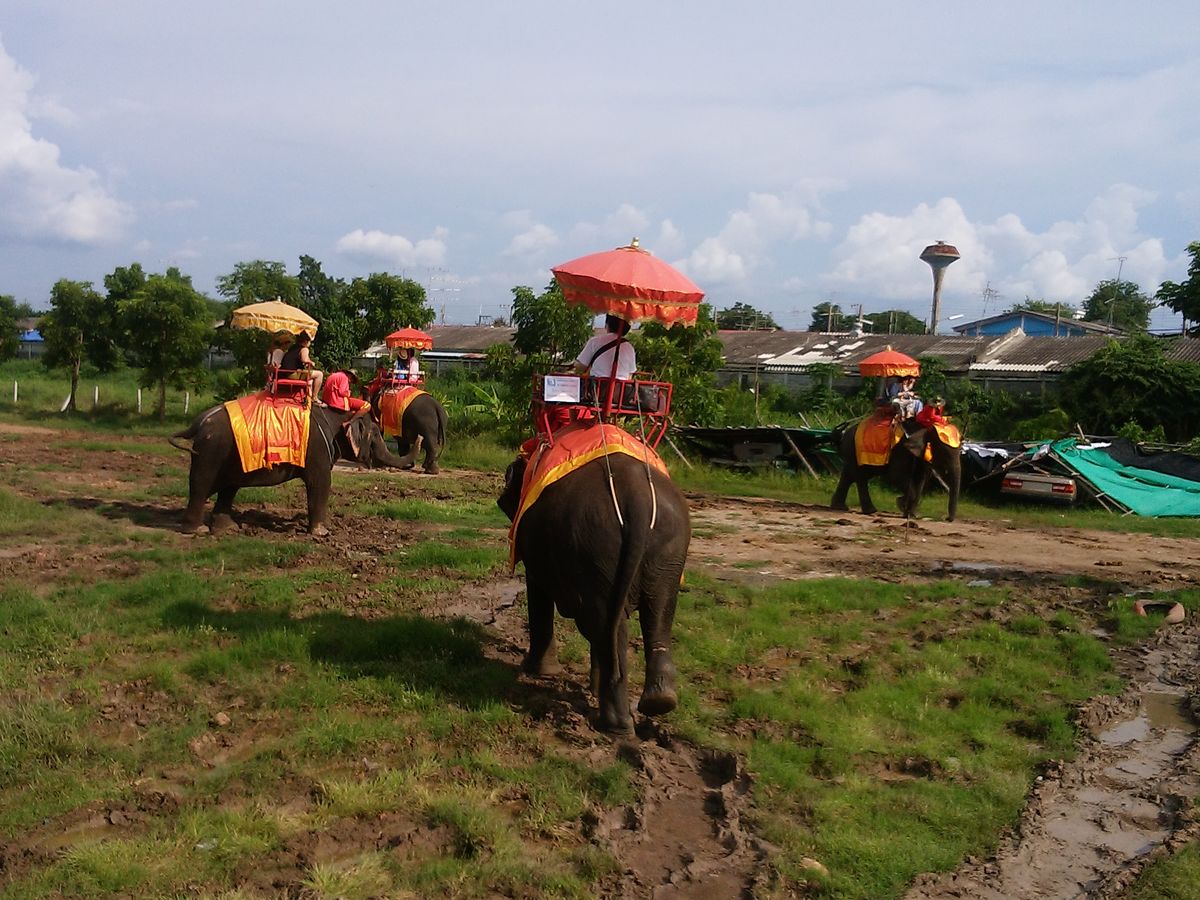 象乗り体験は、当日自由に参加出来ます!1人20分400バーツ。想像以上にアトラクション感があり、短いですが池の中も入って楽しかったです!途中、象使いの方が携帯で写真を撮ってくれたのも期待してなかったので嬉しかったです!アユタヤ遺跡はもう大感激でした!やはり実際見てみて、ガイドさんの説明も聞くと感慨深かったです。駆け足だったけど、見たかったところはしっかり見れたので良かったです!昼食は内容は今ひとつでしたが、参加者の皆さんと色んな話をしながら楽しく美味しくいただけました。スイカジュース、おすすめです!