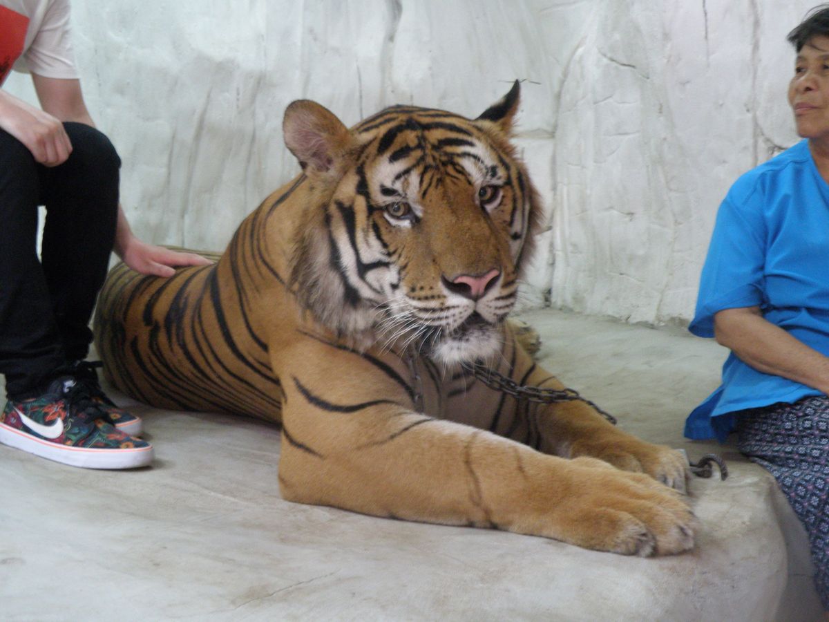 ちなみに象乗り場に併設された部屋に虎がいます。300バーツほどで写真撮影ができちゃいますので興味ある方はぜひ。おすすめです。
