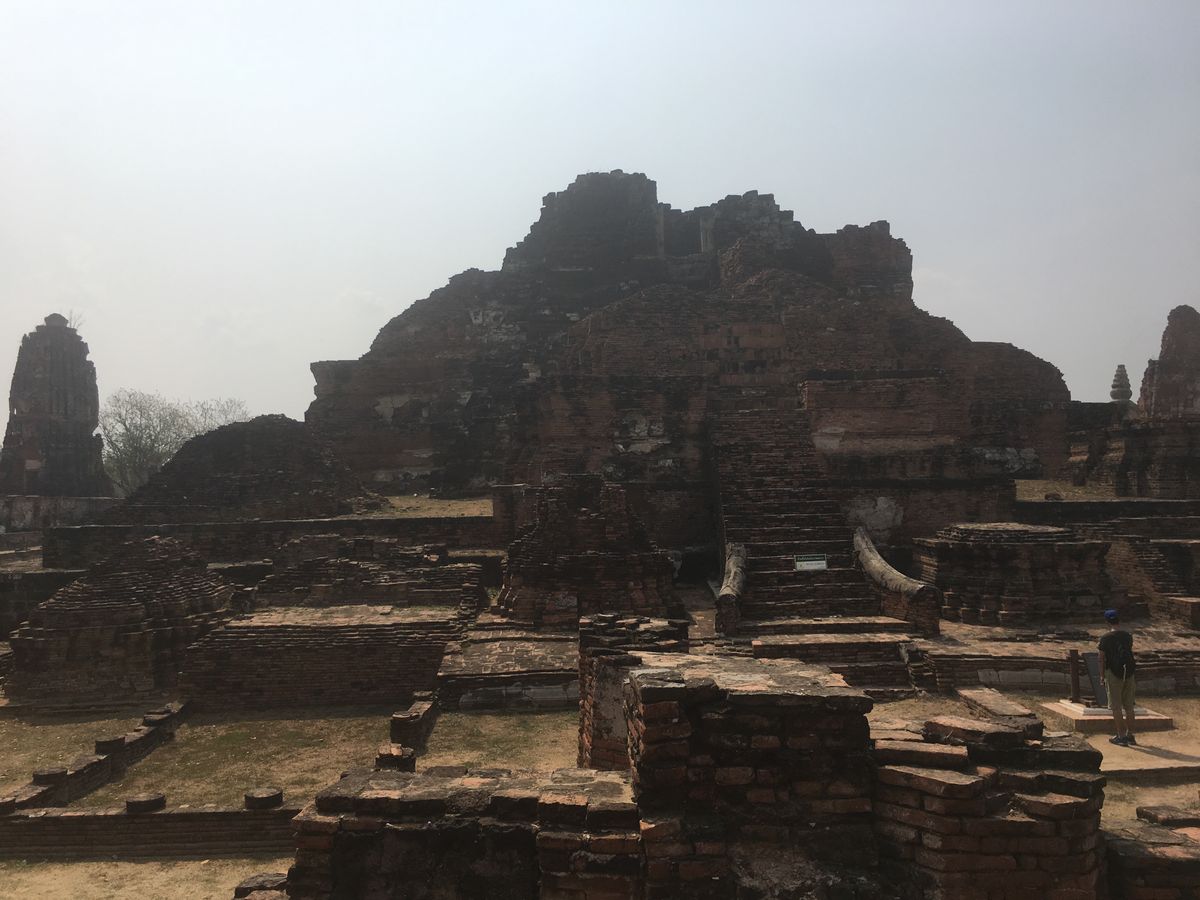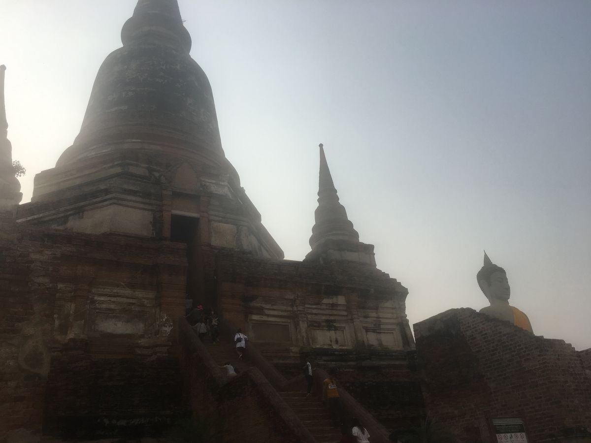 王宮と違ってアユタヤはサンダルや短パンで基本OKですが、足場の悪い道や階段を登るので、スニーカーなど歩きやすい靴を履いていくといいと思います。(忘れても現地でかなり安く買えます)