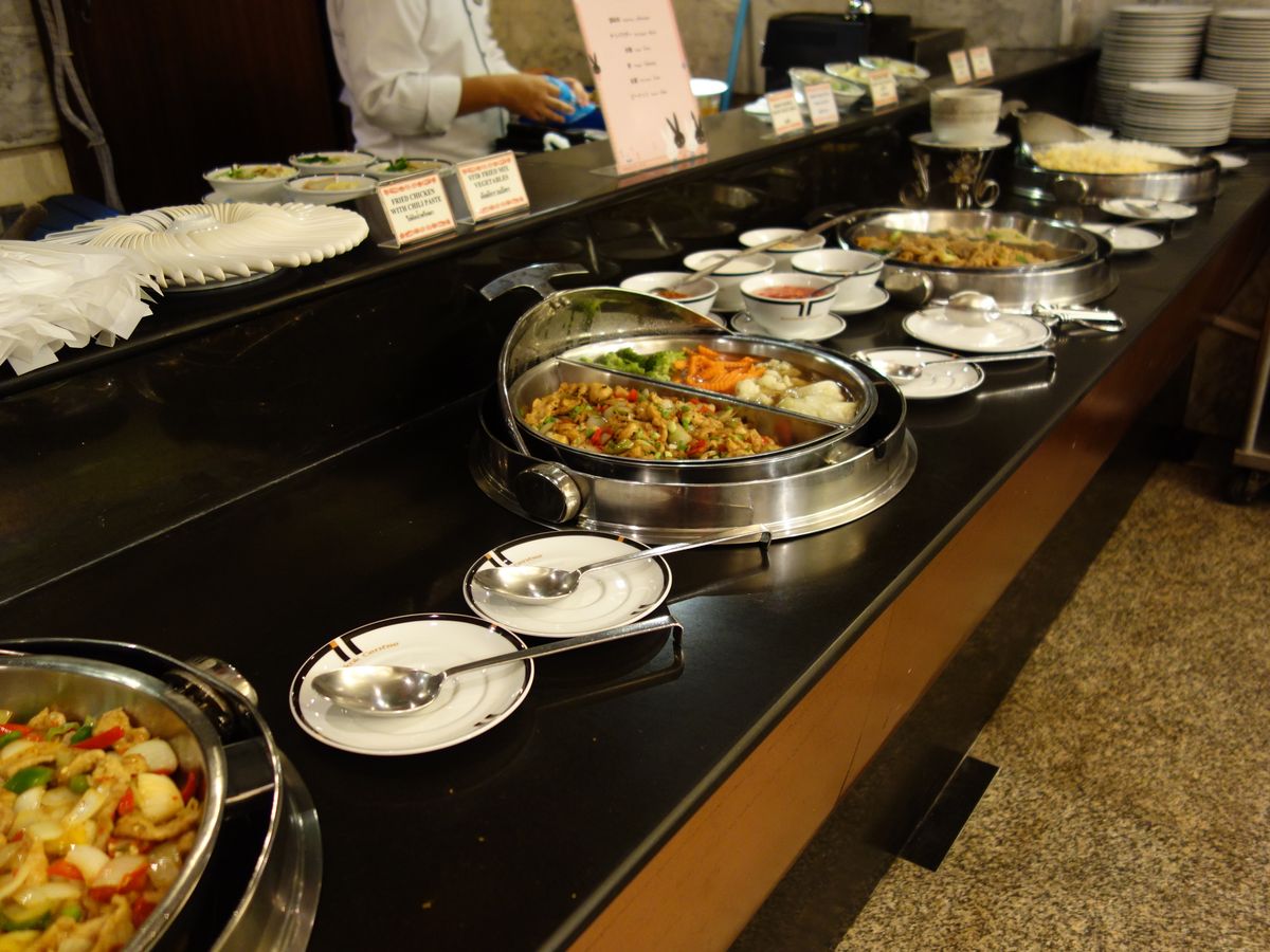 昼ご飯は普通のホテルのビュッフェなので、涼しくて快適でした。タイ料理はほんの一部だけなので、タイ料理についてはあまり期待しないほうがよいですね。