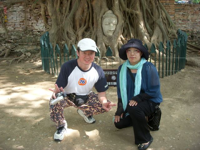 市内からアユタヤまで約70km。高速道路を進むにつれ、田んぼだらけになり、アユタヤの町に到着です。 気温は32度位で快適です。最初は王宮に行きました。本当に綺麗でした。その後、写真で見ていたアユタヤの3つの塔や、木の根に包まれた石像(頭部分)など、本物を見て大感激でした。子供じみてますが、一番興奮したのは像乗りでした。寺院廻りの等の途中で寄りましたが、大きな像がたくさん。 先ずは餌を像に直接あげます。そして像に乗って10分程度の遊覧です。思った以上に視線が高く、揺れました。でも像に乗るなんで日本ではありえない事で、夫婦そろって大興奮でした。気づけば気温は37度くらい。最高に暑いですが、暑さを吹き飛ばす観光名所だらけでした。女性のガイドが付きましたが、観光時の注意点もシッカリ教えてくれて、説明も分かりやすく大変良かったです。また、私たち以外の5名の参加者も非常に良い方ばかりで、そちらも良かったです。