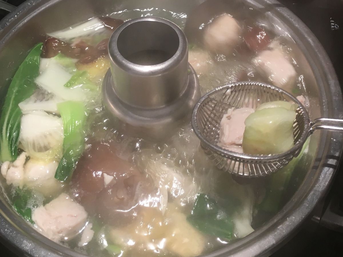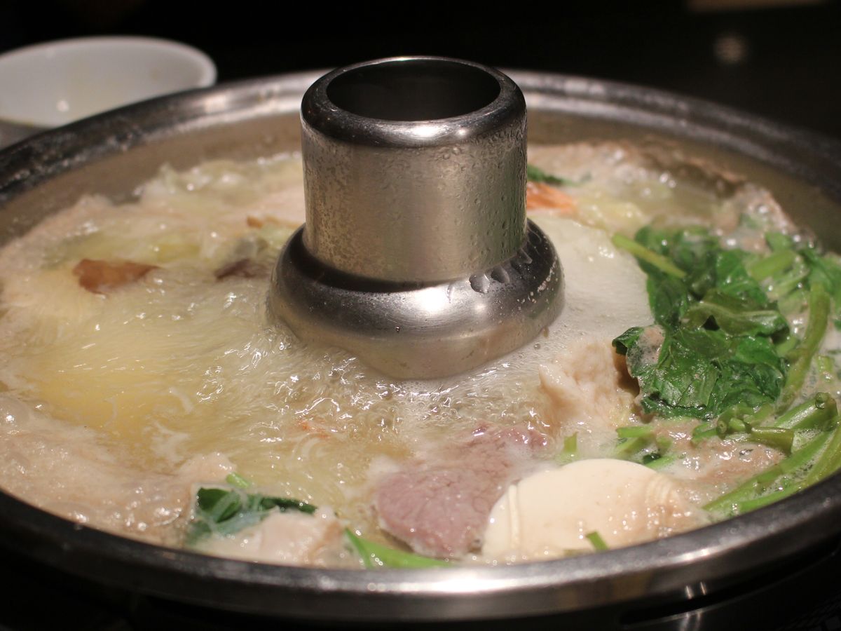 しゃぶしゃぶに近いです。出汁に野菜やお肉やエビを入れて、それを醤油ベースのタレにつけていただくスタイルです。最後に旨味が出た出汁にご飯を入れておじやにしてくれます。