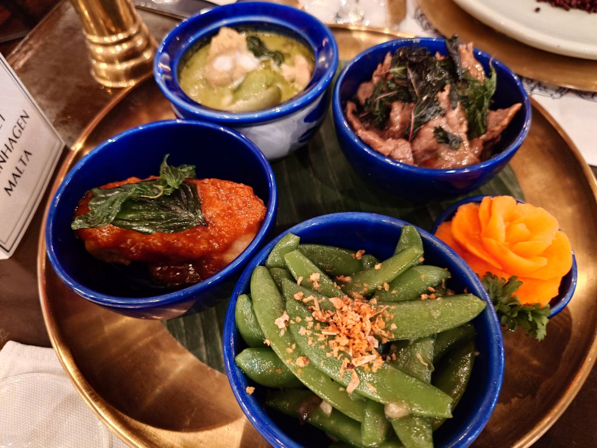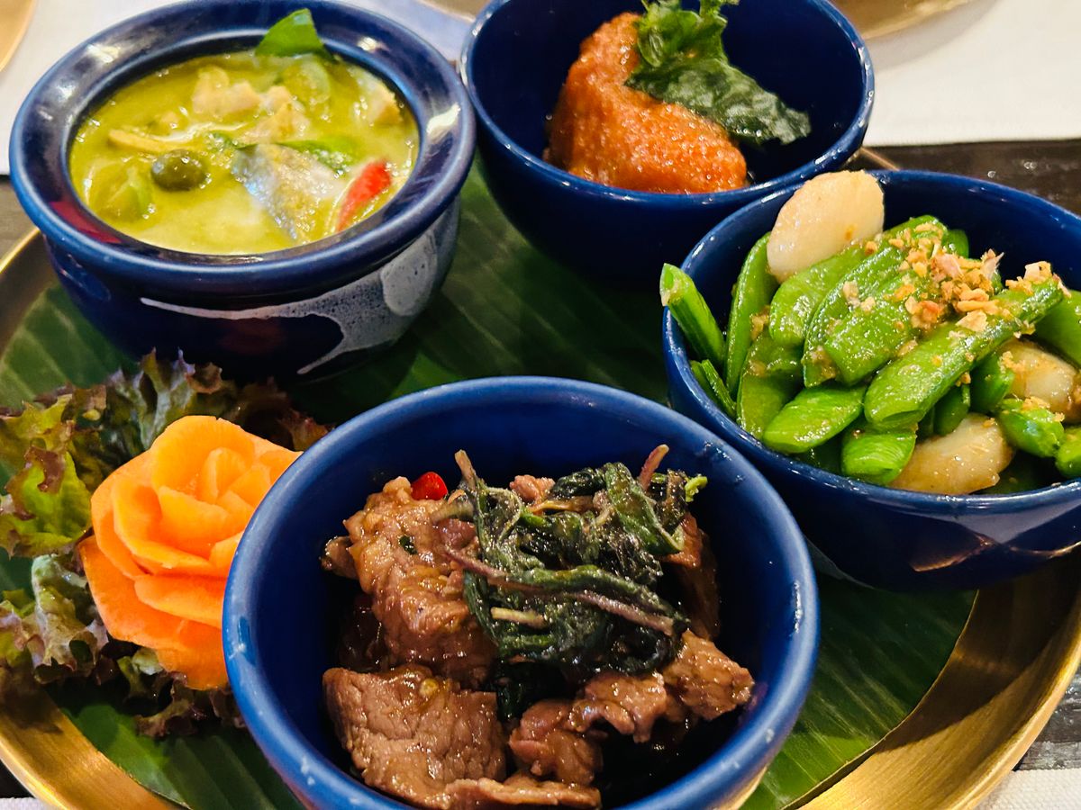 シニア女性4人、とりあえずメニューの写真を見ながらあれこれ注文。プーパッポンカレーはSサイズにしましたが、あまりに美味しかったので後でもう一回Sを追加注文しました。どれも美味しかったです。野菜の炒め物は辛くないと言われましたが少しピリ辛でした。エビの焼いたのに入ってた緑のもの、サヤインゲン?と思って食べたら悶絶する辛さだったので気をつけてくださいね。マンゴースティッキーライスは出てきた時にほんとに美味しいのかな??と思いましたがサイコーに美味しかったです。ココナッツとピーナッツがいい感じでした。