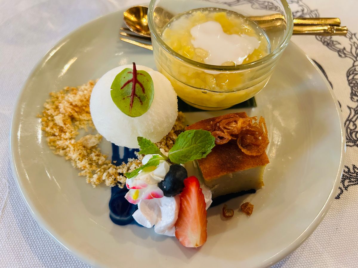 途中に口直しとしてパンダンリーフか何かのシャーベットも出てきたので、それもカウントすると計8品でした。