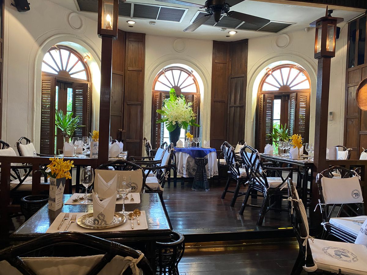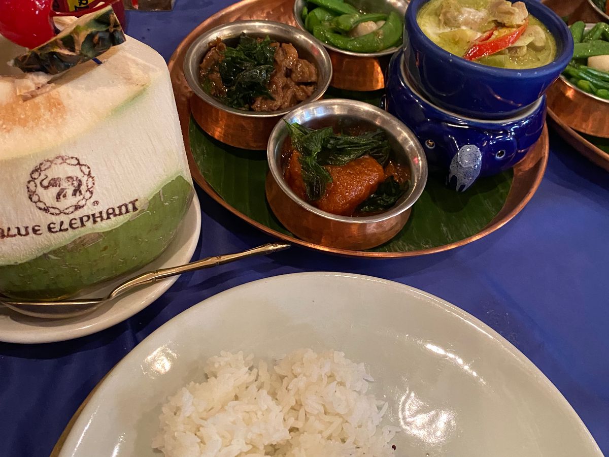 行きたいのが12月30日でしかも土曜日のディナーだったので「ブルーエレファント」のお店の直接予約のHPでは満席だったのですが、ベルトラでは予約ができたので「よかった~!」とこちらで予約を入れました。決まったコースのみだったのがちょっと不安だったのですが、むしろいろいろなお料理を楽しめて、二人でアラカルトで頼むよりも種類多くいただくことができました。そして用意されていたテーブルも落ち着いた窓際のすごくいい席でそれだけでテンション上がりました。お料理は上品でおいしかったです(なかには辛いものもありましたが比較的マイルドでした。)そしてお腹いっぱいになりました。お店は建物も中の雰囲気もクラシックでステキです。到着時と帰る時に入口外にいるスタッフの方に2度とも建物と一緒に写真を撮ってもらえました。お店出るときにはスタッフから女性へのプレゼントとして一輪のランのお花もいただき、すてきなおもてなしでした。