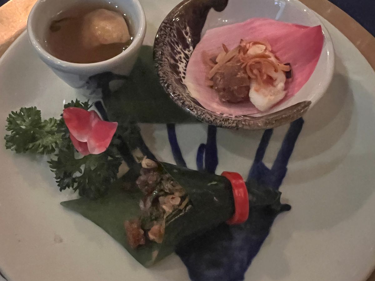 料理もどれも綺麗で味付けも最高!今まで食べた事の無い味ですが美味しくて感激しました。最後はタイカレーでした、ご飯を自分のいい量でついでくれますので残す事無く食べられるかと思います。