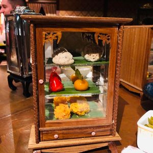 お料理も美味しくて、器がきれいで、デザートは可愛い小さな茶箪笥におかしが並んでいて、可愛かったです。