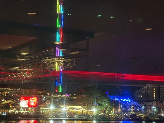 音楽はローカルなものでなく客の国の歌が流れて中国の団体客は特に盛り上がり踊ってました。私達は民族舞踊とか期待したのでちょっと期待外れ。静かなオープデッキで夜景鑑賞してました。