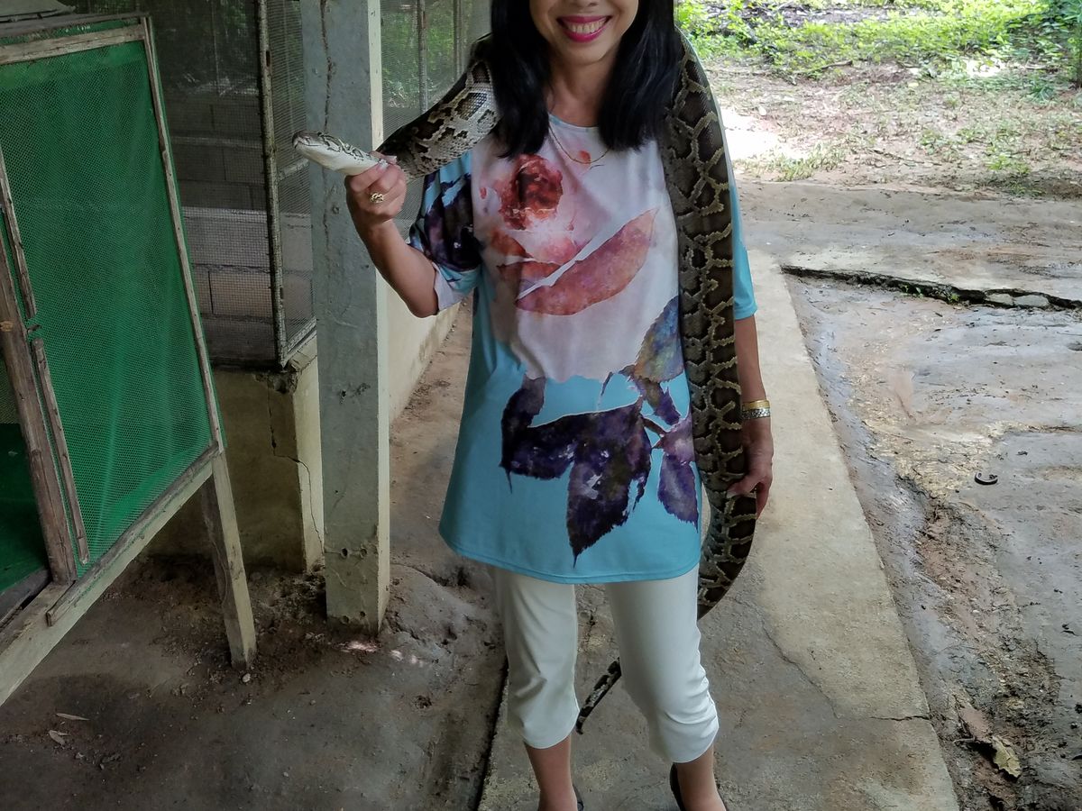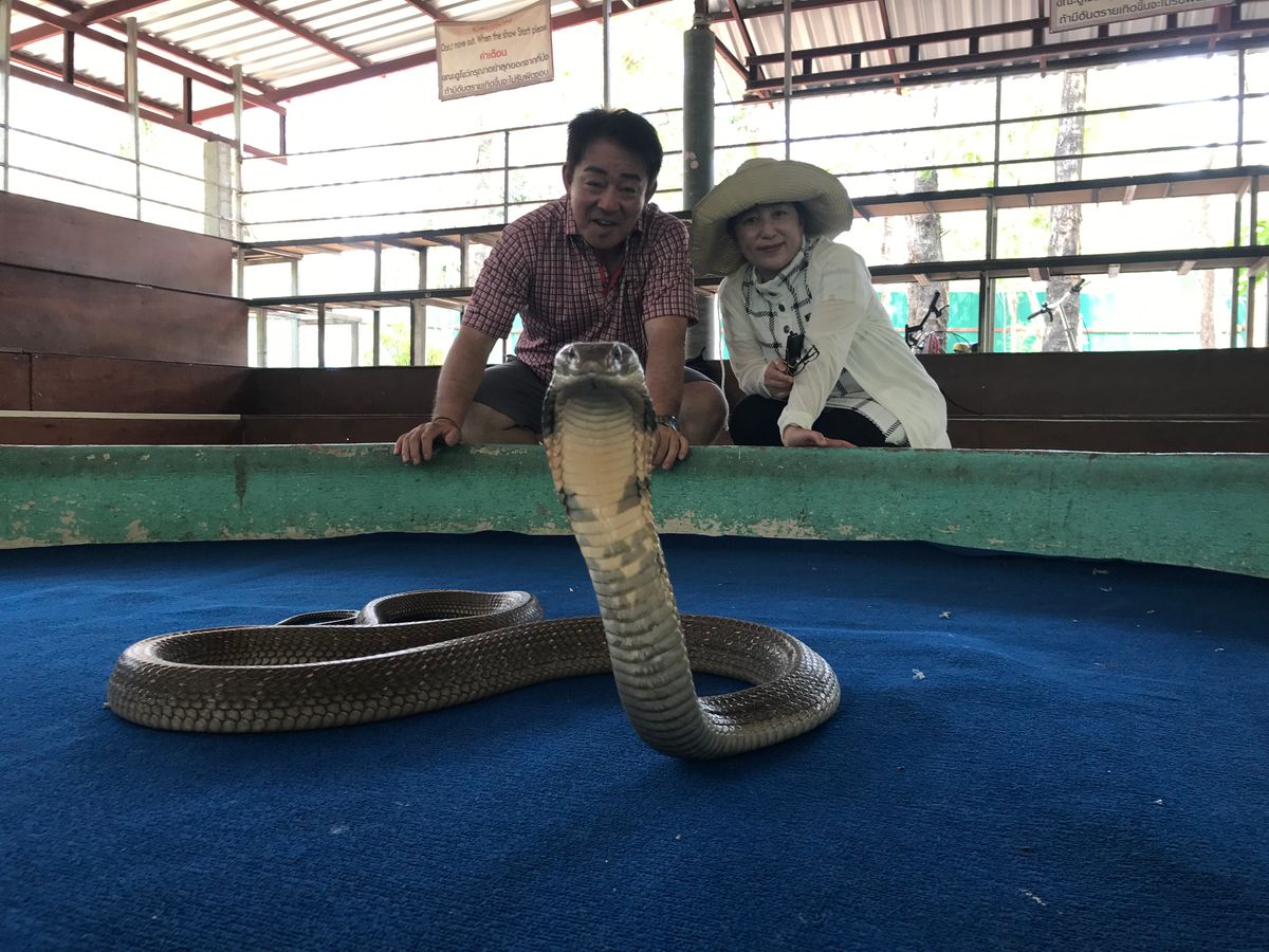 ワニ園、ヘビ園は貸し切り状態。ガイドさんが個人的に友人らしく脱皮したてホヤホヤのヘビの皮をお土産にもらいました。財布に入れると金運が上がる迷信はタイも同じだそうです。後から気が付いたことですが、どの園も動物がいっぱいいた割にほとんどにおいはなかったです。気温も高いのにずいぶんと清潔にされていると思います。