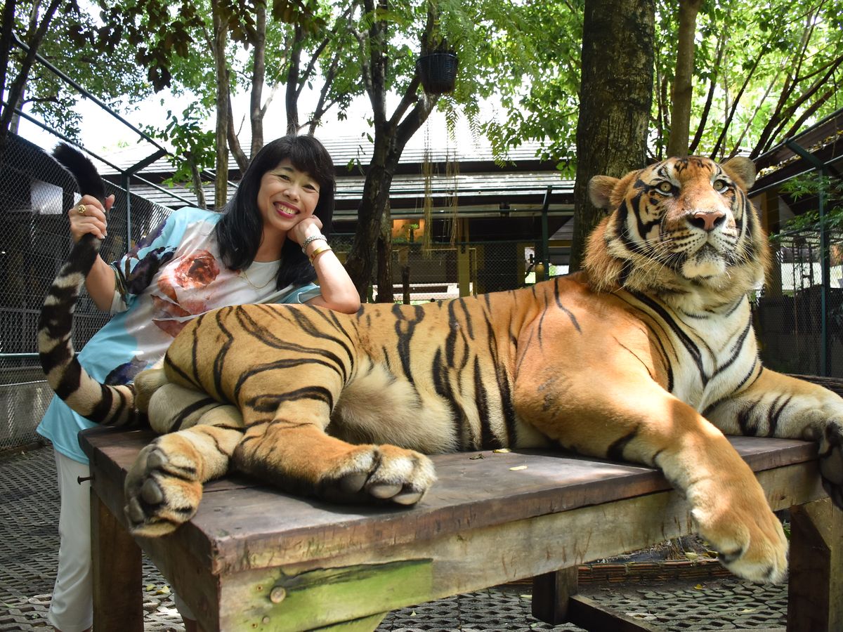 一人だけのツアーでしたが、ガイドさんがとても詳しくていねいに解説してくださって、特に象さんへの愛情が伝わってきました。象にエサをあげたり虎を撫でたり、動物と直接触れ合えて良かったと思います。(個人的な好みで蛇との触れ合いはパスしましたが)蘭園での昼食ビュッフェも、次々に温かい量が運ばれて来て、とてもおいしかったです。