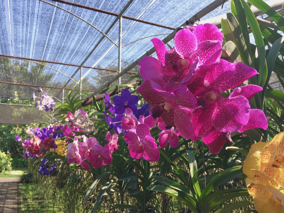 胡蝶蘭が土に植えられてなく、根っこ剥き出しで上から釣り上げられていてとても綺麗でした。紫、ピンク、黄色の胡蝶蘭がいっぱい中々見ることのできない光景でした。他にも園の中に川が流れてたら違う植物があって気持ちいいところです。