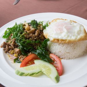 お昼ご飯はパッタイとガパオライスをチョイス。ガパオライスは今回の旅で食べた中で一番美味しかったです。