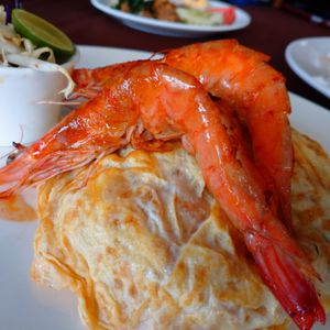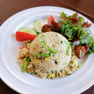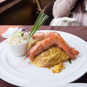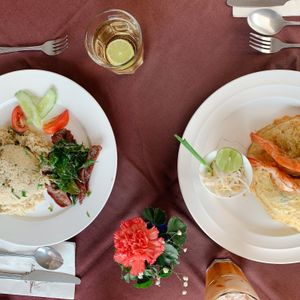 お昼はパッタイとグリーンカレーチャーハンを選びました。どちらもすごく美味しかったです。パッタイに入っていた海老が絶品でした。